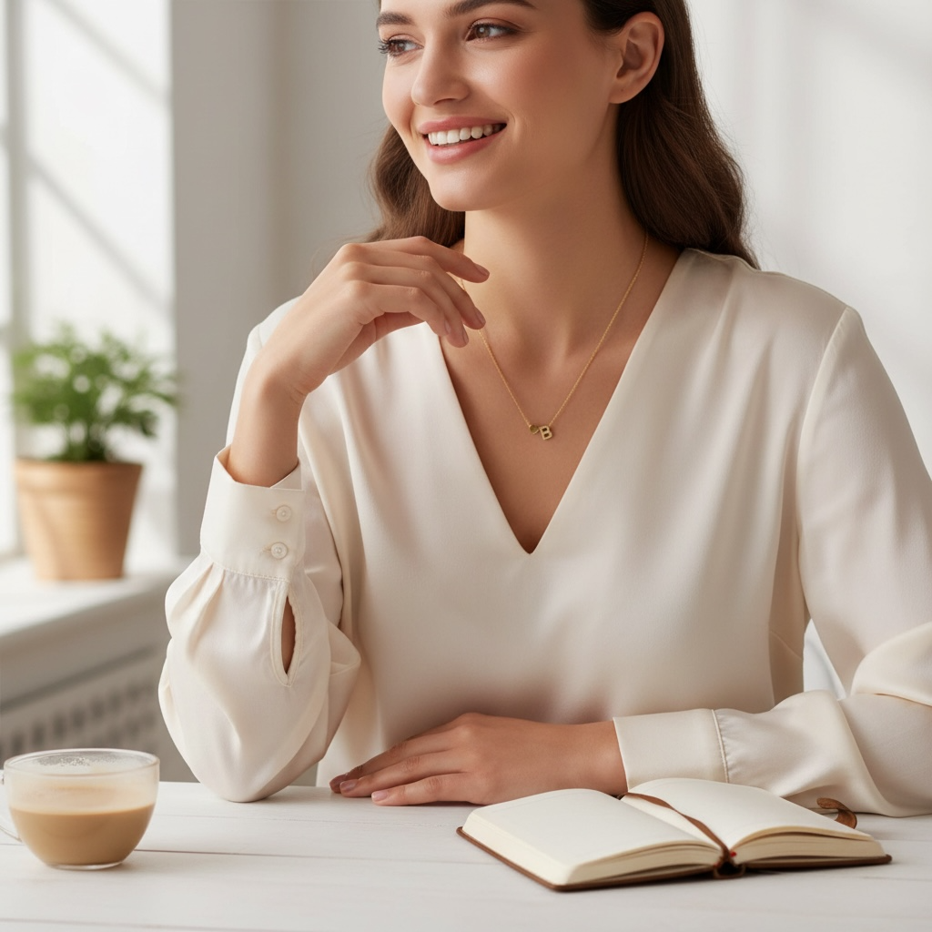 This delicate gold-tone necklace adds a touch of elegance to your everyday moments — perfect for work, coffee dates, or quiet mornings.